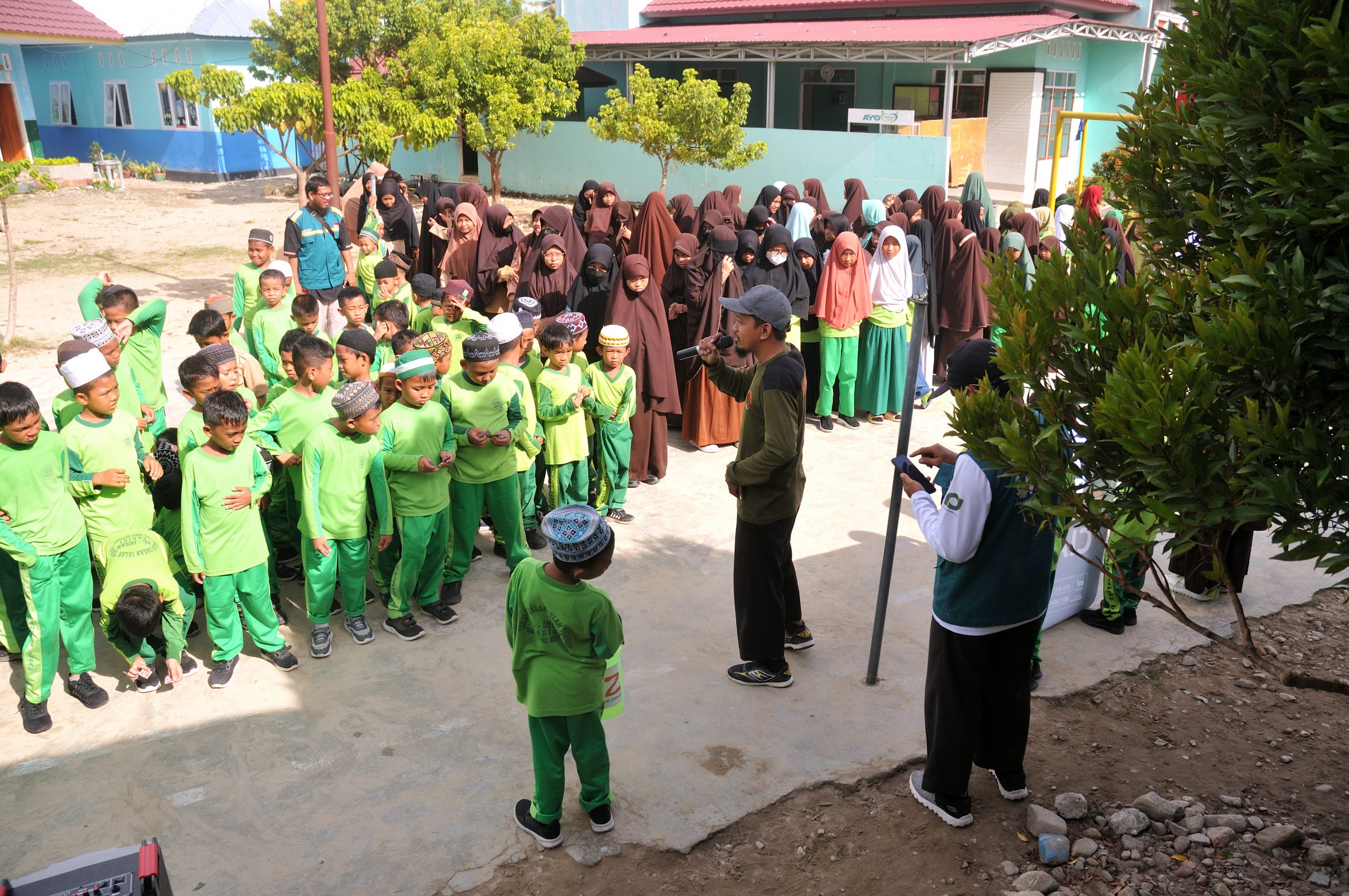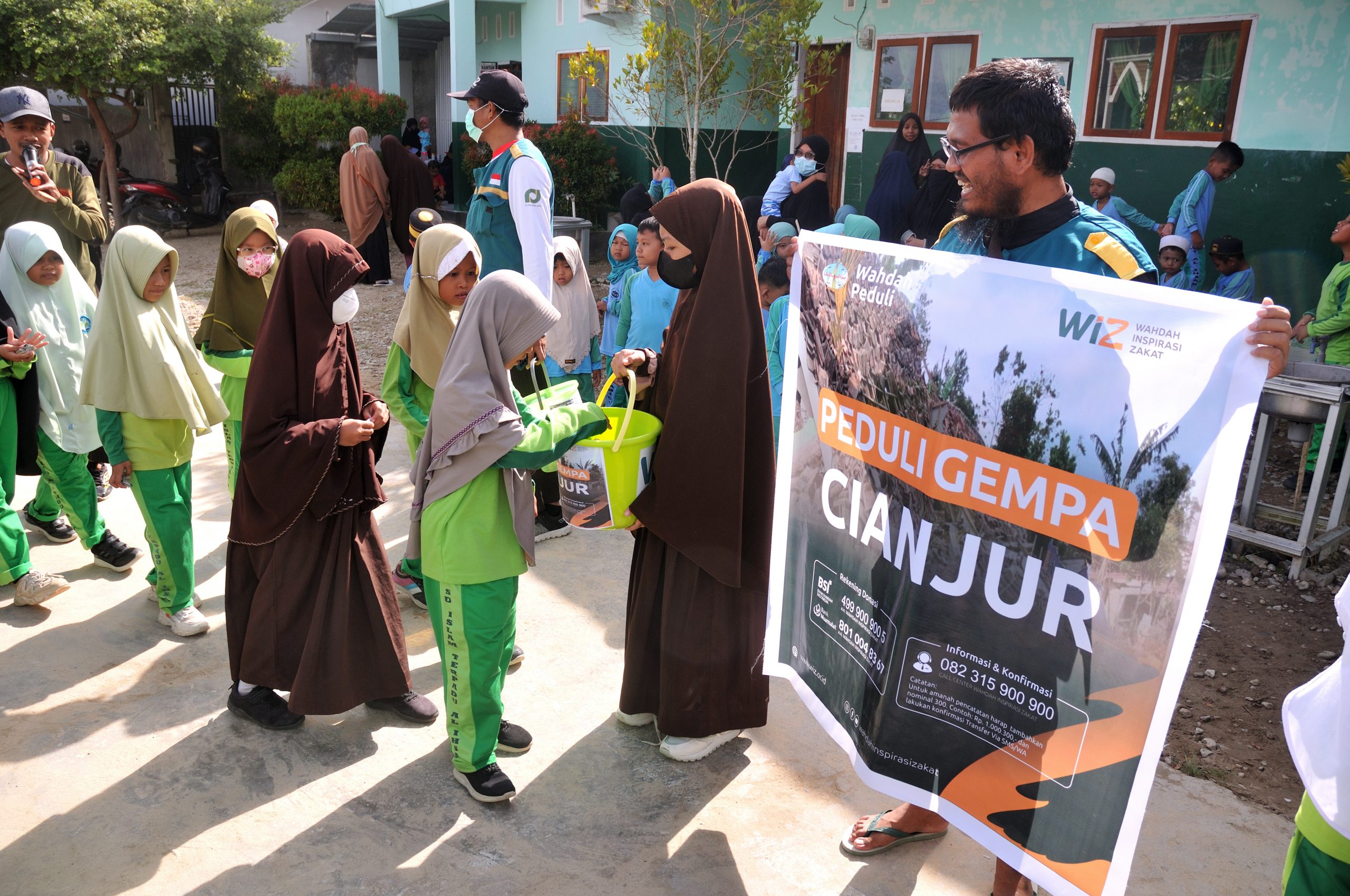 “Hari Jumat adalah waktu terbaik untuk beramal sholeh, termasuk didalamnya sedekah. Ayo kita bantu saudara-saudara kita yang saat ini tertimpa musibah gempa di Cianjur”, seru Ismail dihadapan ratusan murid.